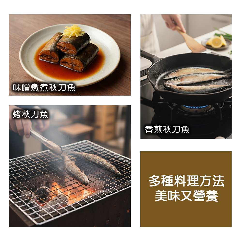 料理建議方式:乾煎秋刀魚、氣炸鹽烤、燉煮味噌魚湯